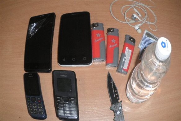 В них находились сотовые телефоны, зажигалки, складной нож и даже бутылка с суррогатом.