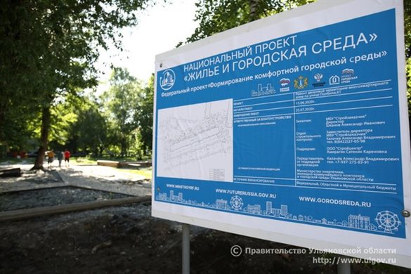 В настоящее время работы по благоустройству в рамках проекта «Формирование комфортной городской среды» национального проекта «Жилье и городская среда» начаты во всех муниципальных образованиях Ульяновской области. Реновация выполняется на условиях софинансирования из средств федерального (97%) и регионального бюджетов (3%). В 2020 году планируется реконструировать 16 общественных пространств и 98 дворов, на эти цели выделяется 354,7 миллиона рублей. В частности, в Ульяновске будет обустроено 25 дворов и семь парков, скверов и аллей.