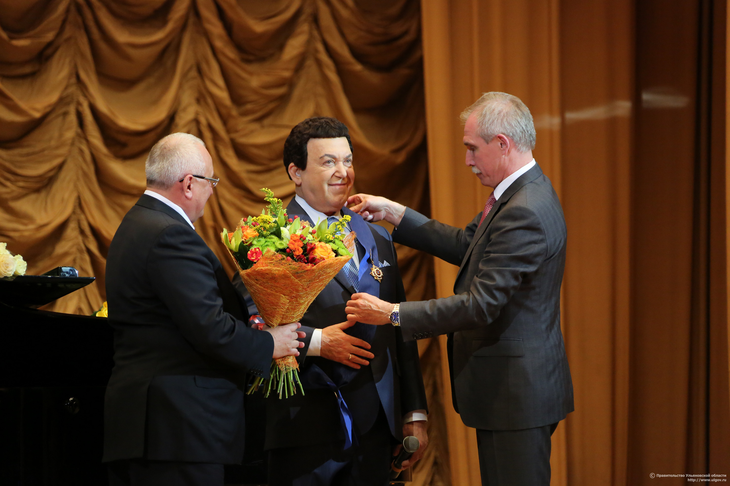 В качестве подарка главе региона он исполнил «Виноградную косточку» Булата Окуджавы. Сергей Иванович в долгу не остался и наградил Иосифа Кобзона орденом «За заслуги перед Ульяновской областью».