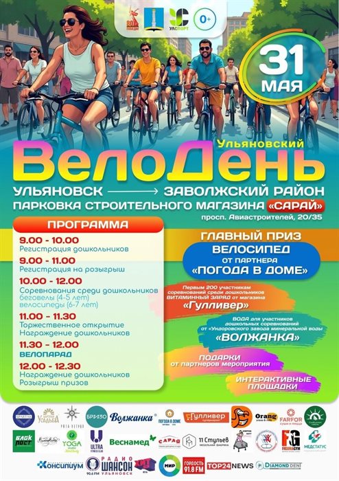 Последнюю веесенюю субботу можно назвать спортивной: в центре Ульяновска, на площади Ленина, в 9:00 стартует «Зеленый марафон», в левобережье, на проспекте авиастроителей, Всероссийская массовая велосипедная гонка. (0+). Участвуйте или приходите болеть! В любом случае море положительных и здоровых эмоций прибудет.
