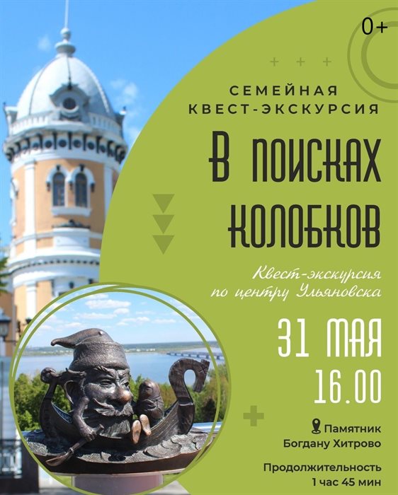 Молодежный центр современного искусства организует экскурсию и фотопрогулку «В бетонной тишине». Сделать интересные снимки городских пейзажей экскурсантам поможет профессиональный фотограф, по желанию снимок можно будет напечатать и оформить в паспарту. (16+). Прогуляться по Ульяновску в последний весенний денек можно будет с АНО «СимбирСити»: в 10:00 посетить обзорную экскурсию «Здравствуй, Ульяновск!» или вечером послушать аудиоспектакль «Ваня Гончаров рассказывает». Пройтись по историческому кварталу с посещением музея-усадьбы городского быта и интерактивной программой «Весёлая фотосессия» в музее «Симбирская фотография» приглашает музей-заповедник «Родина В.И. Ленина» 31 мая в 16:00 (6+). В это же время, но по другому маршруту проект «По ходу. С детьми» организует квест-экскурсию «В поисках колобков» (0+). В Краеведческом музее 1 июня с 15 часов запланированы экскурсия и арт-практикум «Красота растительного мира». Маршрут экскурсии пройдет по постоянной экспоиции музея, а на занятии участники овладеют техникой создания интерьерного коллажа из сухоцветов (16+).