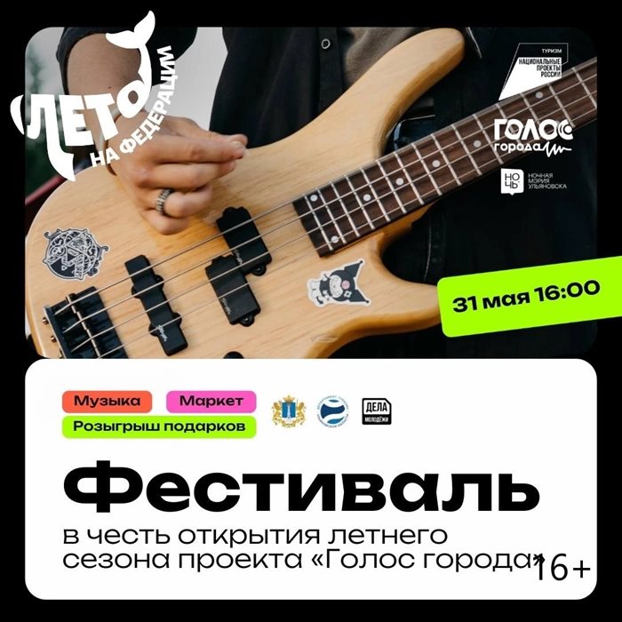 Вечером, в 16:00, мини-фестивалем откроется летний сезон проекта «Голос народа» на улице Федерации: музыка, мастер-классы, игры для детей, ремесленный маркет и фуд-зоны. (16+). По выходным дням улица вновь будет становиться пешеходной.