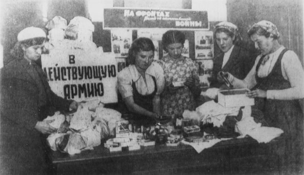 «Выполняя указания Горкома партии о помощи фронту, партийная организация проделала следующее: отправлено новогодних подарков для фронта - 17 посылок на сумму - 1875 руб. В этом большое участие приняли жены сотрудников милиции эвакуированных из зон военных действий», - сообщается в докладе о работе партийного бюро первичной парторганизации в условиях военного времени об оказании помощи фронту в декабре 1941 года.