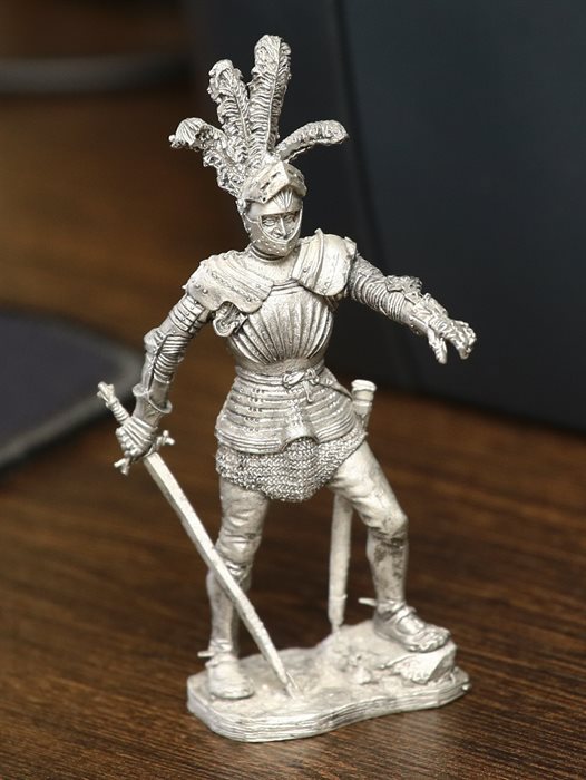 Первым рыцарем «Данилова войска» стал западно-германский рыцарь конца XV века в «плюмажных» (с перьями. - Прим. «НГ») доспехах с характерным пером и указующим жестом. Примерно в то же время коллекционеру попалось на глаза жизнеописание выдающегося рыцаря Франции XV века Жака де Ла Лена.