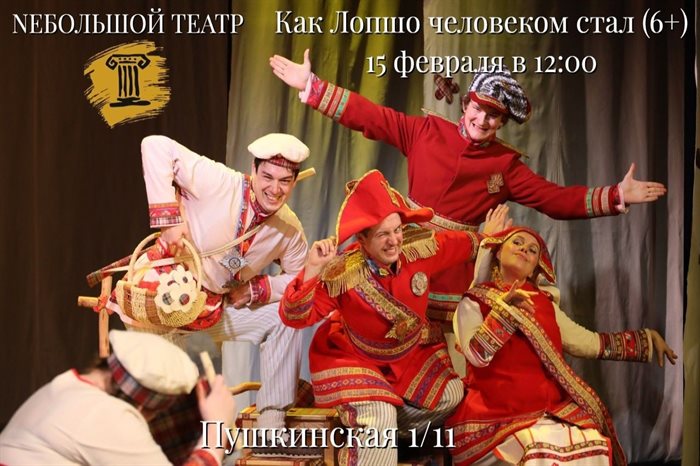 NEБОЛЬШОЙ ТЕАТР 15 февраля в зале «Пушкин» представит удмуртскую сказку «Как Лопшо человеком стал». В воскресенье, 16 февраля, есть возможность стать участником театрально-образовательного проекта «Островский 6+» (в 14.00). В 18.00 ульяновцев ждёт атмосферный вечер в музыкальной гостиной «Поговорим о любви». В фойе NEБОЛЬШОГО ТЕАТРА будет звучать джаз. 14+.