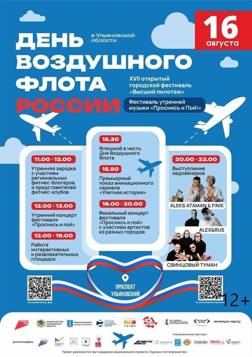 Сегодня в Ульяновске стартует XVII открытый городской фестиваль «Высший пилотаж», посвященный Дню Воздушного флота в России. К нему приурочены и другие интересные события, например завершающий этап мероприятия утренней музыки «Проснись и пой!» (12+). Подробно о фестивале ulpravda.ru рассказала здесь.