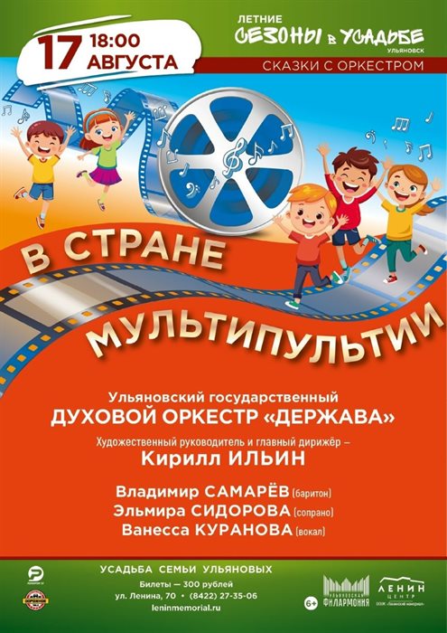 17 августа в концертной программе будут небольшие изменения: в этот день в 18:00 в усадьбе состоится концерт «В стране Мультипультии», ранее заявленный на 23 августа (6+).