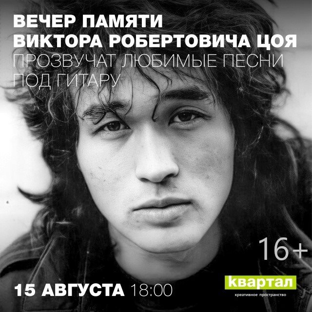 В креативном пространстве «Квартал» в Ульяновске и Центре современного искусства и дизайна (пр. Ленина 2) в Димитровграде сегодня будут вспоминать Виктора Цоя. Лидер культовой группы «Кино» погиб в автокатастрофе 15 августа 1990 года. Вечер памяти начнется в обоих городах в 18:00. Будут звучать любимые песни под гитару, тёплые воспоминания и музыкальные интерпретации песен Виктора Цоя и группы «Кино» (16+).