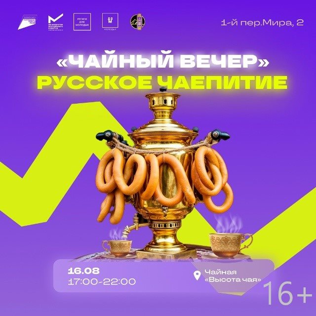 А если ехать в Загарино далеко, а чаю из настоящего русского самовара на щепе хочется попробовать, то добро пожаловать в 17:00 в чайную «Высота чая» в Ульяновске. Здесь будет русское чаепитие на свежем воздухе: самовар, баранки, сушки и диджей-сеты (16+). Интенсив «Чайный мост» реализуется Домом молодых в рамках национального проекта «Молодёжь и дети».