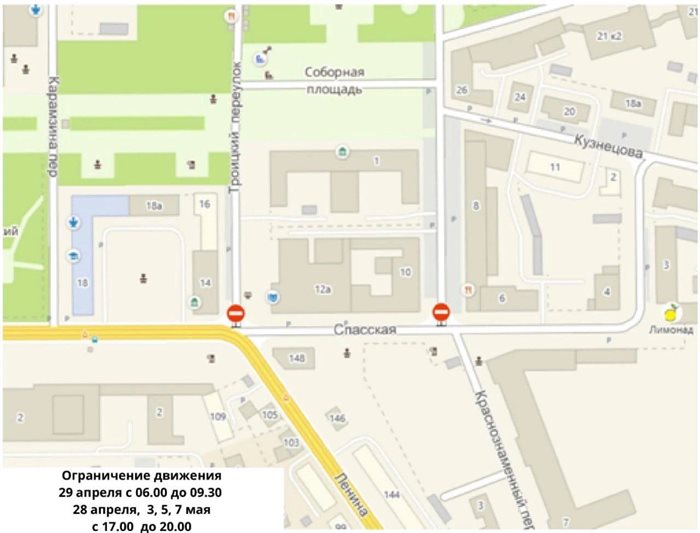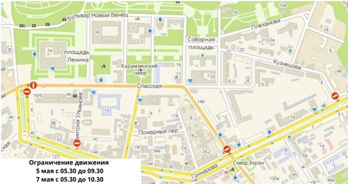 - с 05:30 до 09:30 - улицы Кузнецова, Ленина, Дмитрия Ульянова, Спасскую;