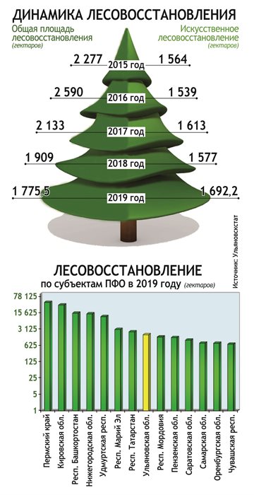 В 2020 году только из федерального бюджета на лесовосстановление в Ульяновской области выделяется 5,8 миллиона рублей.