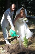 Мария и Александр сыграли свадьбу 5 октября, а теперь решили скрепить брачные узы еще и совместным трудом. В новом микрорайоне молодожены сажают липу.