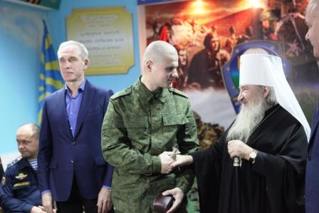 Чтобы новобранцы в Кремле всегда помнили о доме, владыка Феофан вручил им памятные подарки: именные наручные часы, кисет с Ульяновской землей и фотоальбом, в котором первым снимком стала фотография с этой встречи.