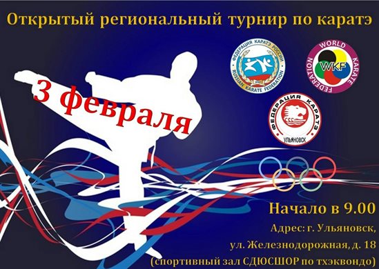 В спортивном зале СДЮСШОР по тхэквондо пройдёт региональный турнир по карате WKF, посвященный Дню защитника Отечества.