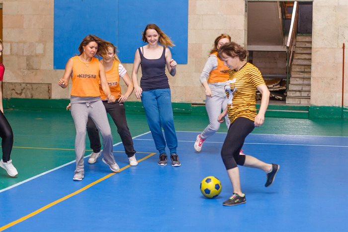 Родители, кстати, в стороне не остаются. В школе по выходным мамы и папы также могут поиграть в футбол, личным примером показав детям пользу спорта.