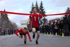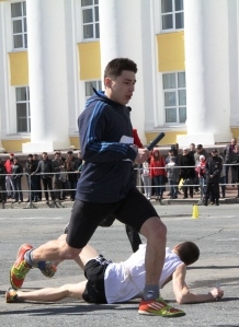 Основная же борьба в самом финишном створе развернулась между 38-м лицеем и прошлогодним триумфатором эстафеты - гимназией № 1. На самых последних метрах дистанции учащийся 38-го лицея Марат Султанов потерял равновесие и упал за метр до финиша, а Павел Топорков из 1-й гимназии, сорвавший финишную ленту, без сил упал на фотокора нашего издания Павла Шалагина.