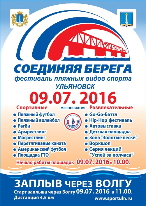 Напомним, 9 июля 2016 года в Ульяновской области пройдёт II фестиваль пляжных видов спорта «Соединяя берега».