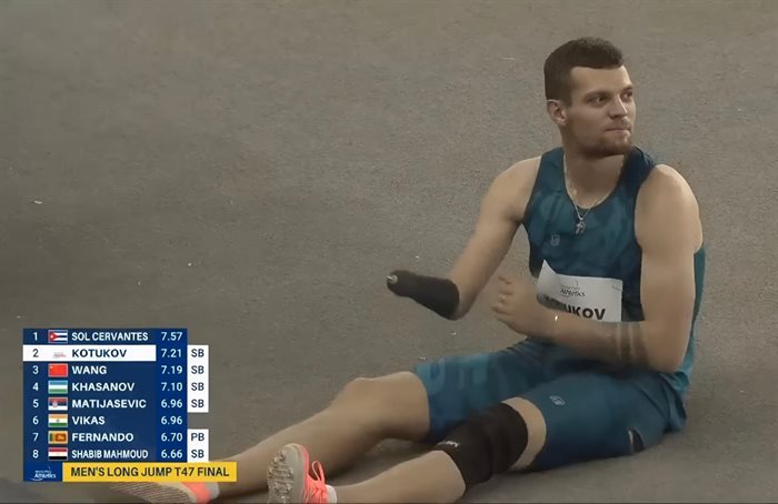 А следом также в соревнованиях по прыжкам в длину призовой результат показал и Никита Котуков, который завоевал серебряную медаль, уступив золото параатлету с острова Куба.