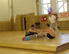 Напомним, мас-рестлинг - это национальный якутский вид спорта, набирающий популярность в России и в мире. По его правилам два спортсмена держатся за палку и пытаются перетянуть на свою сторону соперника.
