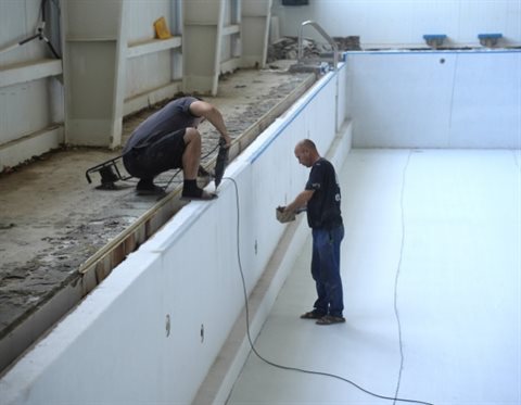 Масштабные работы по капитальному ремонту бассейнового комплекса в спортивном центре стартовали с 1 июля. На этом этапе подрядная организация проводит замену напольной плитки на антискользящее покрытие, полную модернизацию душевых кабин и комплексную реконструкцию большой чаши бассейна с заменой гидроизоляционного покрытия.
