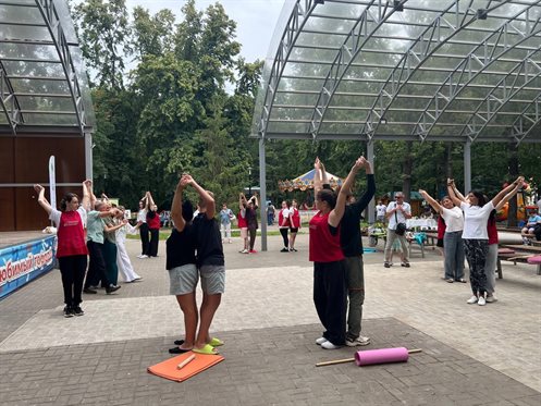 На зеленой лужайке собрались любители практик разных направлений: от классической йоги Айенгара до более современных форм — стретчинга и пилатеса. Малыши знакомятся с игровой йогой, подростки участвуют в тематических мастер-классах.