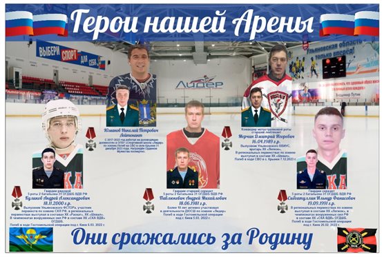 Андрей Куликов, Николай Юманов, Андрей Павлюкевич, Дмитрий Мерчин, Ильнур Сибгатуллин. Эти ульяновцы-герои могли бы играть с нами в хоккей, но они отдали свою жизнь за Родину и нашу безопасность. Их подвиг живёт в наших сердцах и вдохновляет новое поколение спортсменов.