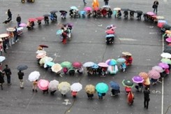 В воскресенье в Ульяновске прошел яркий флешмоб «Симбирские зонтики». По задумке организаторов, участники акции, вооружившись зонтами самых разных расцветок, должны были собраться на площади Ленина и выстроиться в огромный «смайлик».