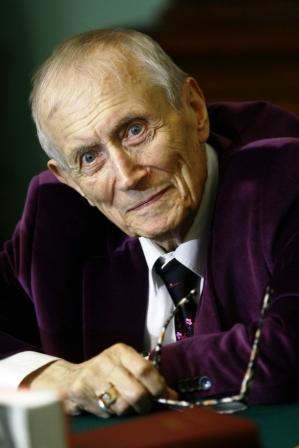 Мне посчастливилось днем ранее увидеть его в областном Дворце книги. На пресс-конференцию 83-летний поэт пришел в длинной норковой шубе, фиолетовом костюме и с перстнями на длинных худых пальцах. Несмотря на свой почтенный возраст, пронзительный и ясный взгляд, которым он окинул аудиторию, был молод и полон энергии.