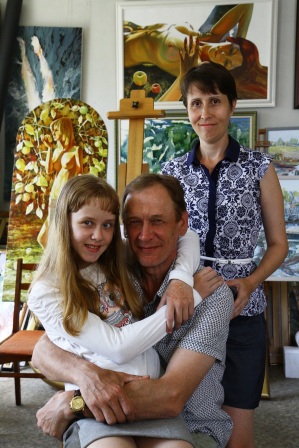 Ю.: Много лет мы не держали в доме телевизора, читали книги - это помогает общению. У нас было одно дело. Писали картины, купили велосипеды, мотались по паркам с этюдником. Мне просто с Любой повезло. Наша профессия не дает возможности заработать кучу денег. Другая сказала бы: зачем мне такой муж? Но она тоже художник, все понимает и может мне многое простить. У нас всегда была интересная жизнь, нам не скучно. Оба романтики - любим поезда, дороги. Нас манит север, по которому чувствую ностальгию. Ездим отдыхать на Белое море, полярный Урал, на Ладогу, на Соловки. Живописные, и главное - дикие места. Берем напрокат велосипеды, плаваем на лодках по островам. Это дарит энергию, настроение и… желание возвращаться домой.
