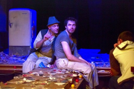 Играют здесь не только актеры, но и предметы, и детали костюмов. Огромные веера и молотки, салфетки размером с одеяло, мозг - воздушный шарик, протыкаемый гигантским штопором, а также клоунские большие карандаши. И главный наряду с Мокинпоттом герой этого спектакля - раритетный холодильник - своеобразное вместилище всех радостей и страданий таких странных и вместе с тем вполне обычных вайсовских персонажей.