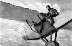 «Дорогая Лена! Шлю тебе пожелания не из-за облаков, а из госпиталя. Пишу левой рукой. Я потерпел крушение. Возвращаясь из разведки, на высоте 800 метров остановился мотор, и мы пошли к земле. Упали в проволочные заграждения. Аппарат разбился в куски. Я повредил правую руку, лицо, грудь и бок. В общем, отделались счастливо. При таких катастрофах от пилотов остается немного. Пережил ужасное состояние. Будучи ранен до катастрофы, я летал с перевязанной рукой, и в момент катастрофы под мотором меня удавила перевязка через плечо и бинокль. В то же время меня обливал бензин. К счастью, мотор не работал, иначе я был бы факелом».