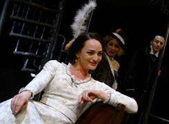 Речь в пьесе, как ни крути, о театре. Поэтому театрально в спектакле Анатолия Морозова все. Даже, не сочтите за тавтологию, сам театр. Ограниченный тем самым «горизонтом», за который в течение всей пьесы пытается прорваться напоминающая трамвай конструкция, куда-то все время мчащая действующих лиц. Этот «трамвай» одновременно является парафразом из «Рабы любви» Никиты Михалкова, что порождает дополнительные красивые и глубокие ассоциации. Хотя между киношной Вознесенской и ульяновской Негиной в исполнении Юлии Ильиной на первый взгляд нет ничего общего. Молодая актриса объемно и ярко не изображает жертву, но не жалеет красок для образа светской хищницы. Не без показной стервозности временами. Но уже к середине первого акта, казалось, за губительной страстью читается натура искренняя, честная. С трагическим надломом. Но вынужденная быть сильной. Даже в боли, даже в смертельной тоске мятущегося сердца.