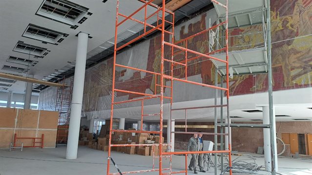 Сейчас готовят к реставрации торжественный зал - там обновят светопрозрачный потолок и будет частично заменен мраморный пол, мозаика в хорошем состоянии, ее только помоют.