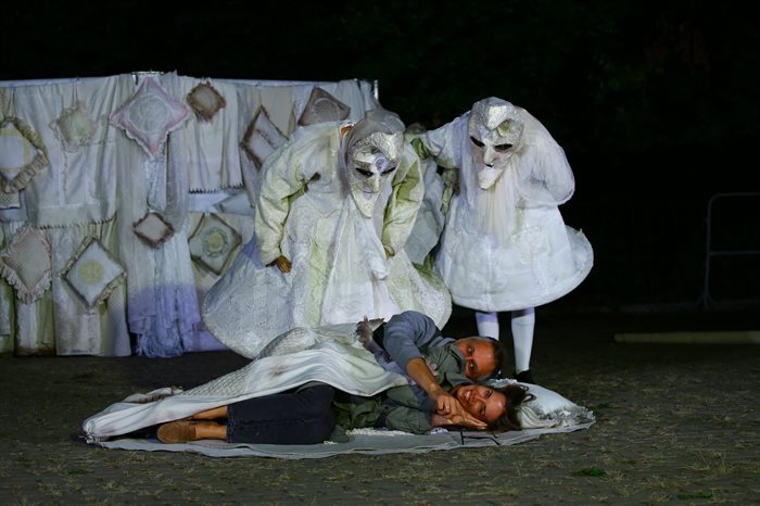Не менее многолюдно было в минувшее воскресенье во Владимирском саду, где прошел второй с 2022 года Всероссийский фестиваль уличных театров, приуроченный к Дню города и организованный в этот раз Ульяновским молодежным театром. Хозяева показали «Мезозой». Театр «Пластилиновый дождь» из Самары представил трогательную историю «Аисты» о трудностях и радостях рождения новой жизни. Волшебно и красиво выступила труппа «Легкие крылья» из Альметьевска со спектаклем «Маяк» про то, что свет и тепло человеческого сердца всегда укажут верную дорогу. А «Странствующие куклы господина Пэжо» (Санкт-Петербург) порадовали зрителей, буквально сделав их участниками вечернего забавного и вместе с тем лиричного перформанса «Месяцы» и уложив спать прямо посреди парка парами и группами.