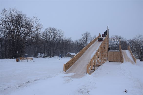 В «Винновской роще» заработала самая большая и длинная горка в Железнодорожном районе. В выходные дни жители имеют возможность покататься на зимнем банане «Экскурсии по Винновской роще».