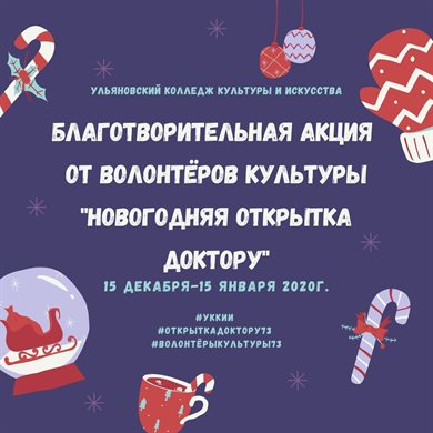 Благотворительная акция «Новогодняя открытка доктору» проходит в колледже культуры и искусства с 15 декабря по 15 января. Организаторами мероприятия выступают преподаватели художественных дисциплин Наталья Флегонтова, Ольга Юркина, Римма Абросимова.